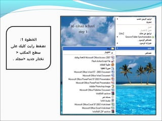 تتضمن الوثيقة خطوات لمشاركة مجلدات وملفات على الشبكة. يبدأ الإجراء بإنشاء مجلد جديد، ثم تحديد إعدادات المشاركة، وأخيراً اختيار الملفات المراد مشاركتها مع أجهزة أخرى عبر الشبكة. تقدم الوثيقة إرشادات واضحة خطوة بخطوة لضمان مشاركة سلسة وفعالة.