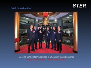 - STEP was founded in 1995 and listed on the Shenzhen Stock Exchange in 2010. It has over 300 engineers and sales networks covering over 30 countries.