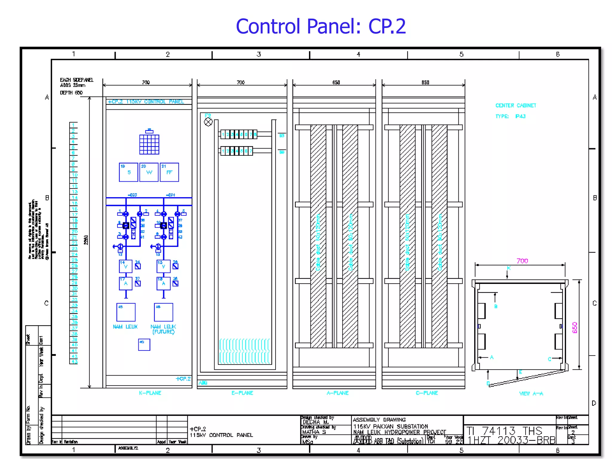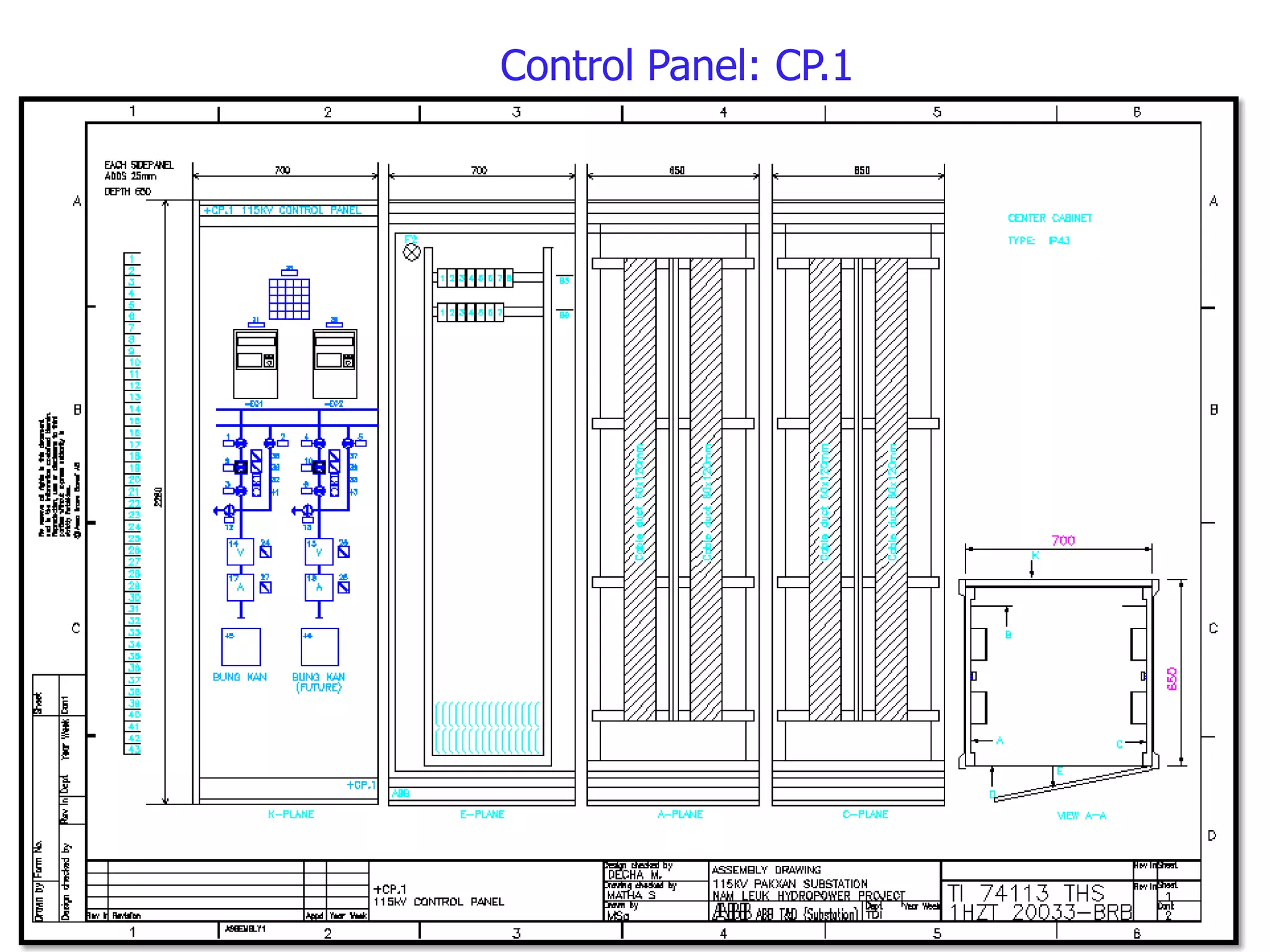This document lists control panels and relay panels in a facility. It mentions control panels CP.1, CP.2 and CP.3, as well as relay panels RP.1 and RP.2.