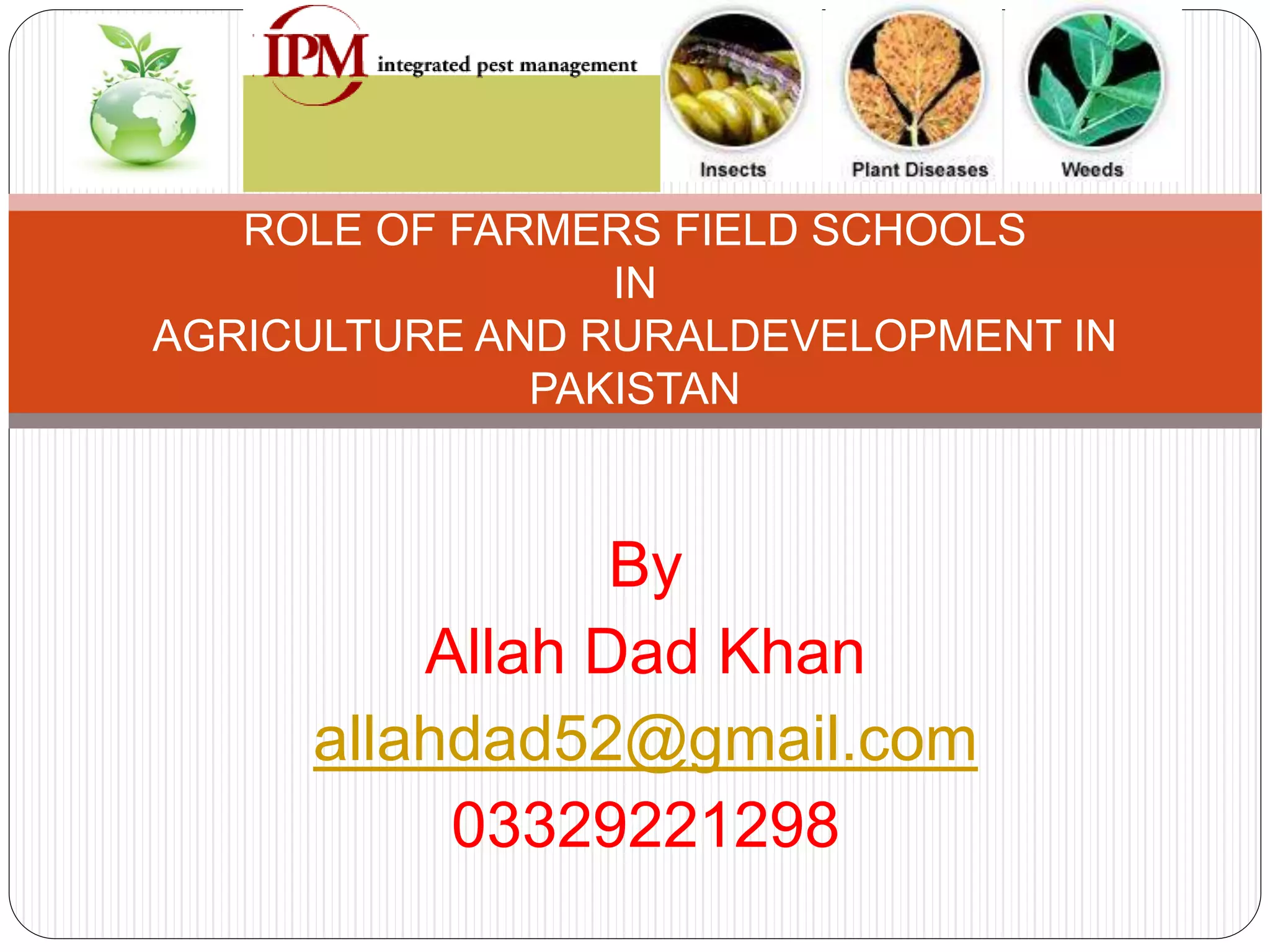 The document discusses the role of Farmer Field Schools (FFS) in enhancing agricultural practices and rural development in Pakistan, emphasizing experiential learning and community engagement. FFS promotes integrated pest management and empowers farmers to make informed decisions based on local conditions through collaboration and discovery-based learning. Key elements include a hands-on curriculum, regular sessions, and an empowered group dynamic to strengthen farmer capacities.