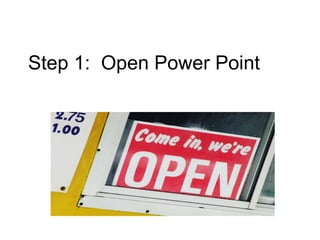 This document outlines the steps to create a basic PowerPoint presentation: open PowerPoint, select a theme, organize ideas in point form, add a credit page if using sources, include your name/group name, and add some animation. The presentation concludes with thanking the viewer.
