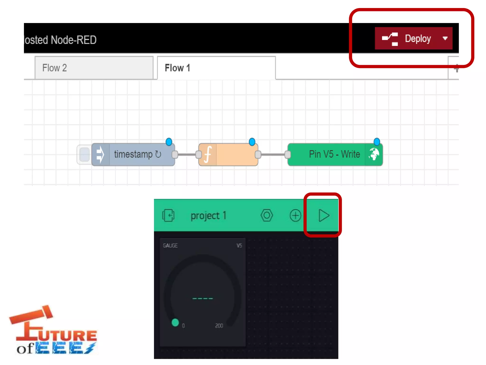 The document provides a step-by-step guide for using the Blynk mobile app along with the Fred IoT platform for monitoring random values. It explains how to install the app, create a project with a Node-MCU device, and configure a gauge widget. Additionally, it briefly mentions how to use the Fred platform to send data without hardware after account registration.