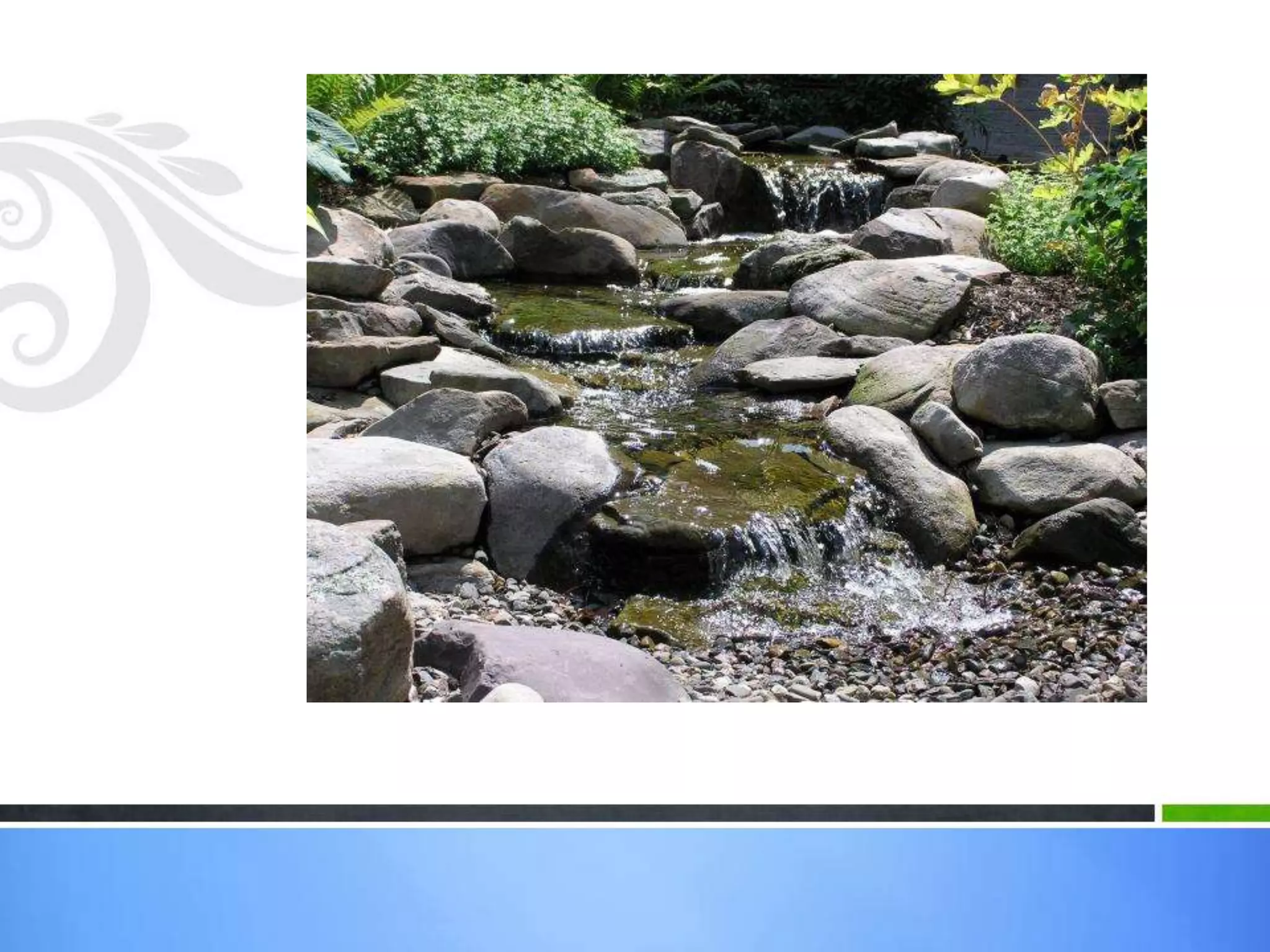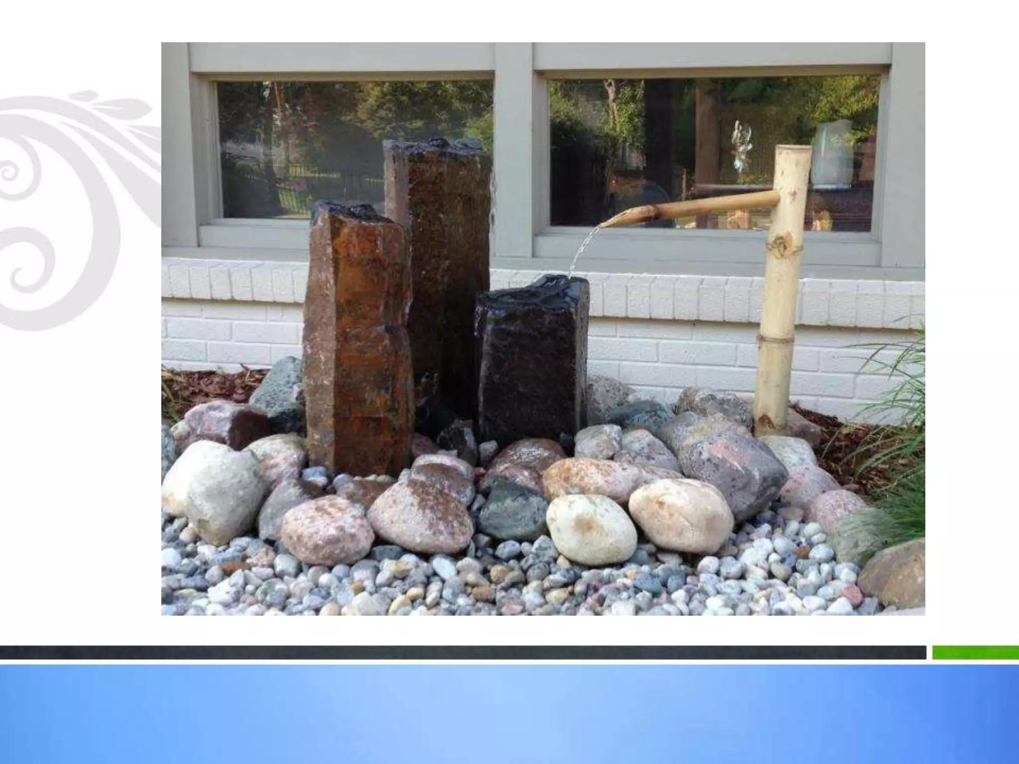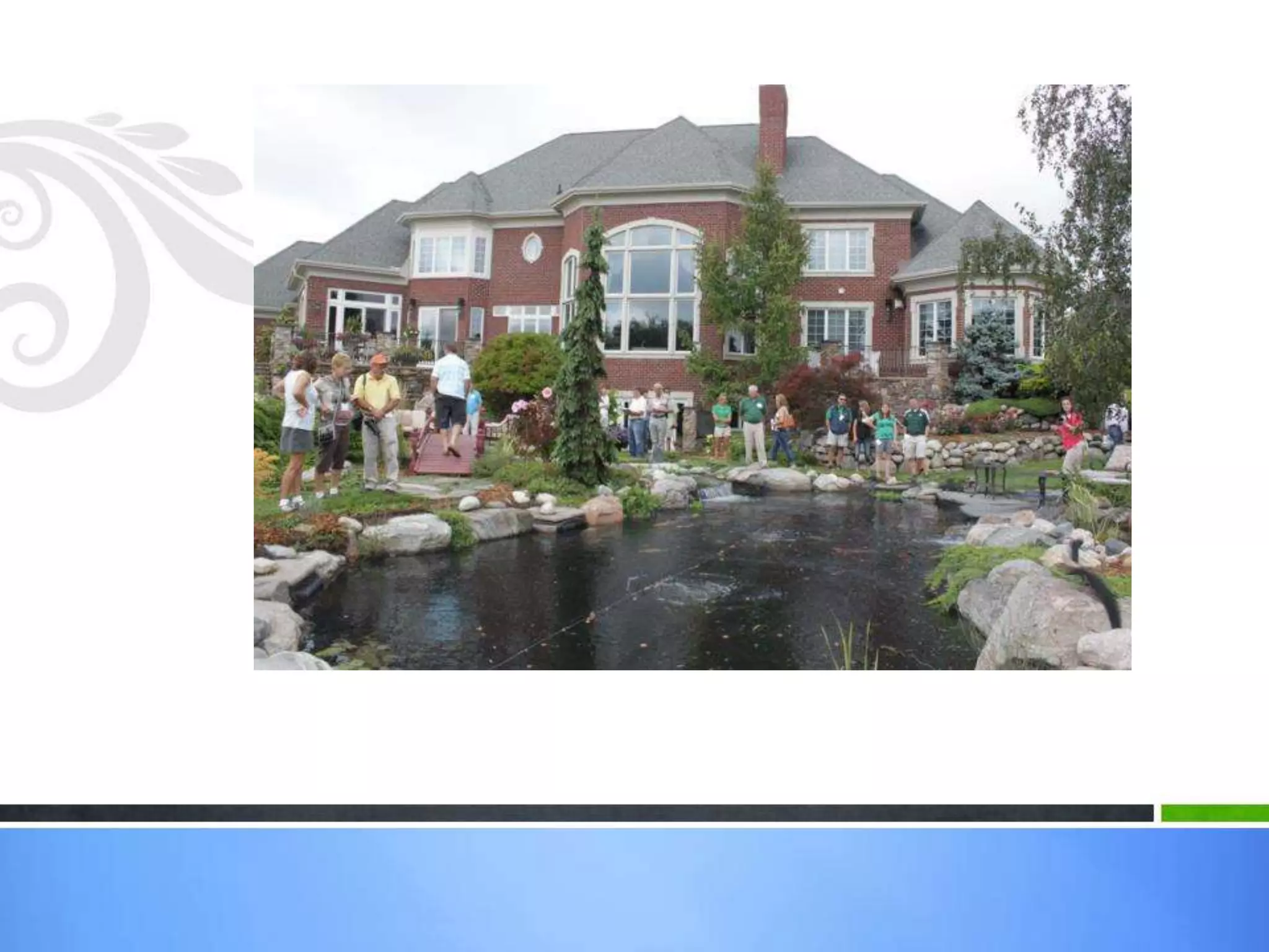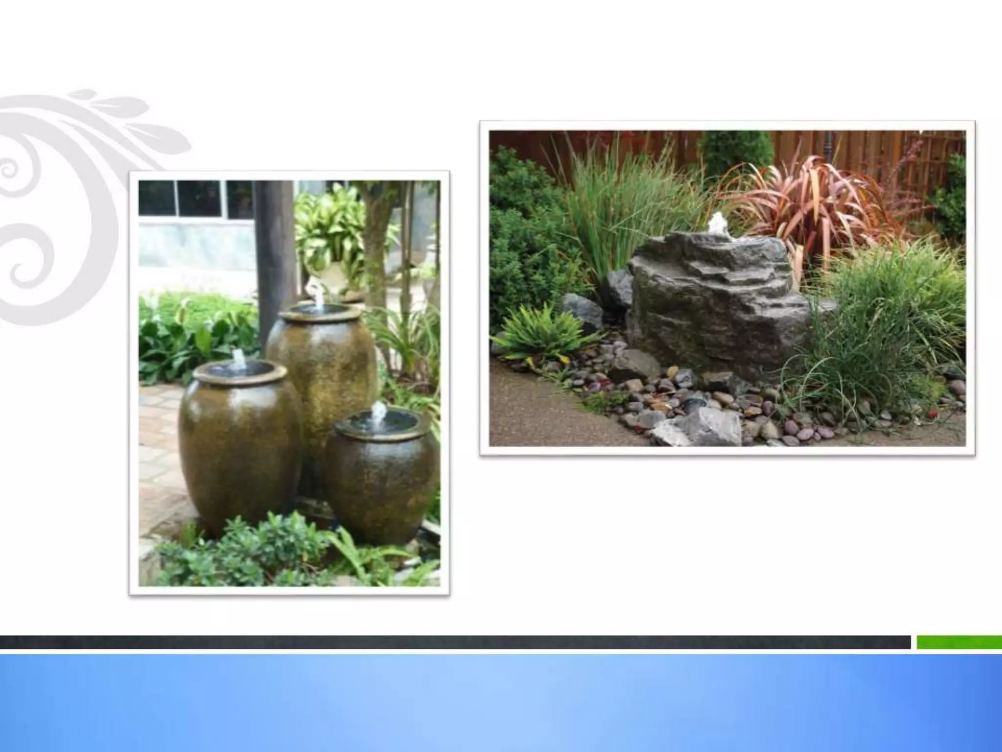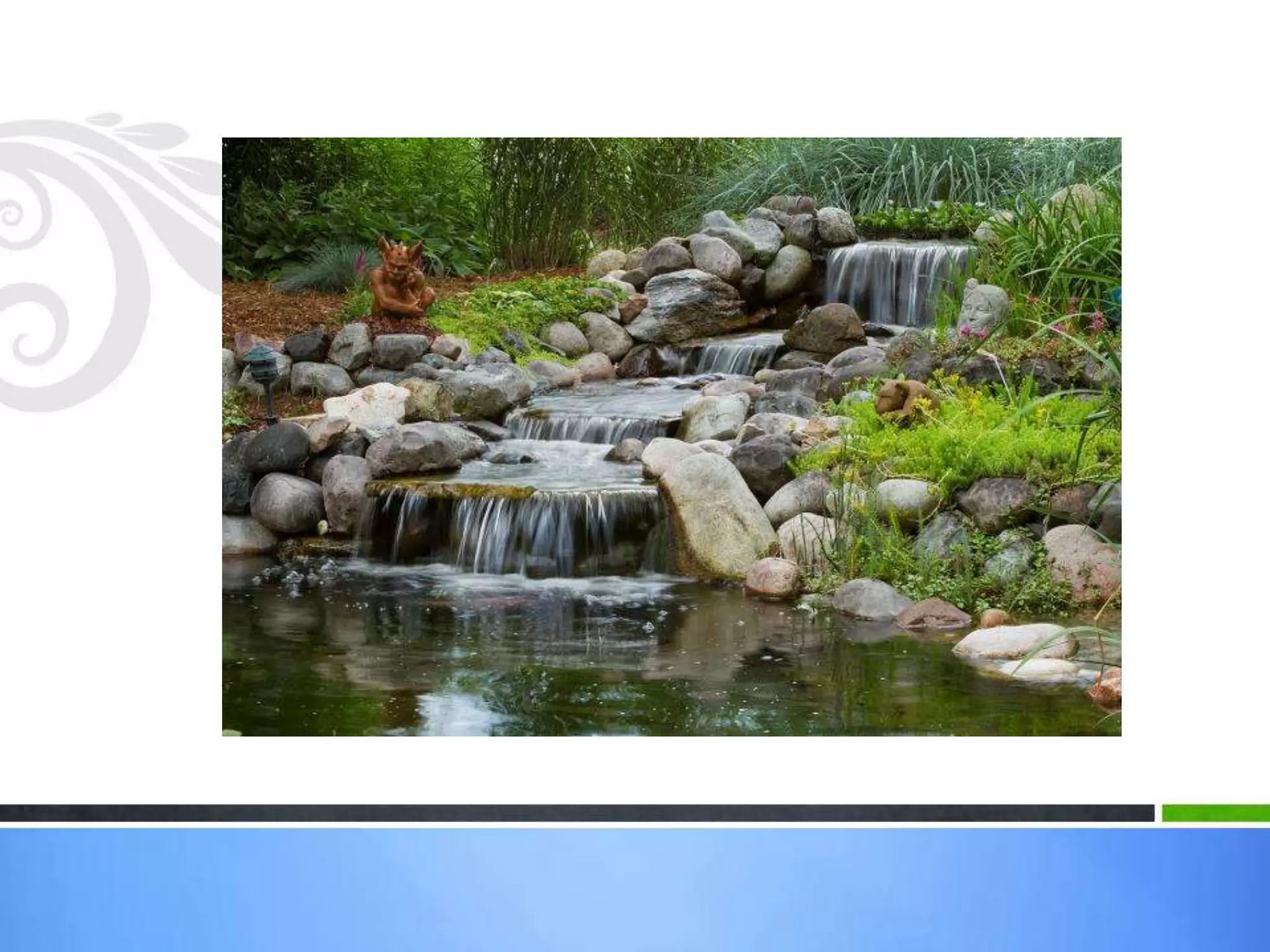 The document outlines the advantages and opportunities of incorporating water features into landscapes, emphasizing their appeal to consumers and the landscape industry's growing demand for low-maintenance options. It presents various types of water features, including fountains and koi ponds, and provides guidelines for installation and design considerations. The document also encourages companies to leverage online resources and social media to promote their water feature offerings.