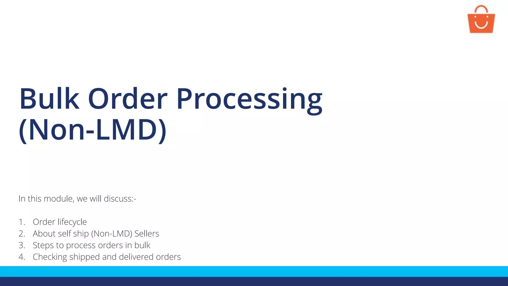 This document discusses bulk order processing for non-LMD (Last Mile Delivery) sellers on Paytm Mall. It outlines the order lifecycle and benefits of being a non-LMD seller. It then provides step-by-step instructions for sellers to process multiple orders in bulk, including downloading order details, uploading tracking numbers, packing orders, and marking orders as shipped. Sellers can also check the status of shipped and delivered orders and download duplicate packing slips if needed. The overall process allows sellers to efficiently fulfill and track large volumes of orders on Paytm Mall.