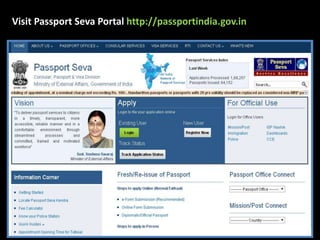 To apply for passport services, users must first visit the Passport Seva Portal and register by creating a user ID and confirming their email. Once logged in, applicants can select the required service and choose to either download an e-form to fill out offline and later upload, or fill out the application form online directly on the portal. After submitting the application, applicants must schedule an appointment at a nearby Passport Seva Kendra (PSK), pay the application fee online, and print the receipt with their appointment details.