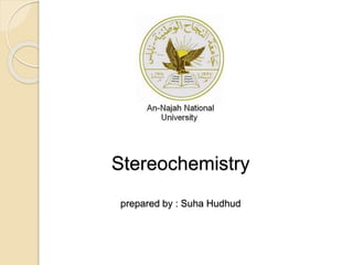 The document provides an overview of stereochemistry, explaining concepts such as isomers, chirality, enantiomers, and optical activity. It details the Cahn-Ingold-Prelog system for naming chiral centers and includes methods for determining optical purity and enantiomeric excess. Key representations like Fischer and Newman projections are also covered, as well as the practical implications of optical activity in chiral molecules.