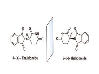 The document discusses stereochemistry and its significance in drug action, focusing on isomerism and chirality in molecules. It explains the concepts of stereoisomers, enantiomers, and diastereomers, highlighting the importance of chiral drugs in pharmacology and their distinct physical and chemical properties. The text also cites examples of chiral drugs and their effects, along with the implications of stereoselectivity on drug metabolism and pharmacokinetics.