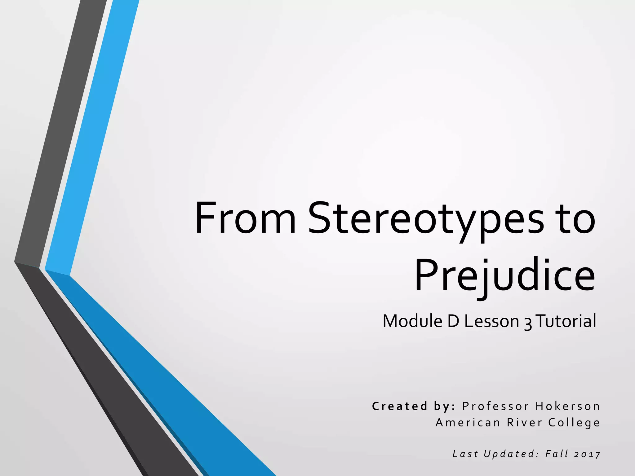 The document is a tutorial on the relationship between stereotypes and prejudice in social psychology, covering concepts such as social categorization, implicit personality theory, and the effects of in-group and out-group biases. It outlines learning objectives related to differentiating cognition types, assessing stereotypes, and understanding the origins and strategies to reduce prejudice. Key findings highlight that stereotypes serve as cognitive components of prejudice and that combating prejudice requires cooperation and understanding rather than mere contact.