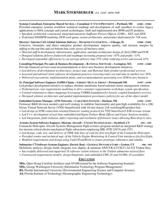 Mark Sternberger is an experienced CTO with expertise in enterprise architecture, SOA, BPM, cloud computing, and security. He has over 30 years of experience leading complex technology programs and digital transformations for large organizations. Some of his responsibilities have included establishing architecture competencies, developing strategic roadmaps, mentoring adoption of best practices, and ensuring compliance of mission critical solutions.