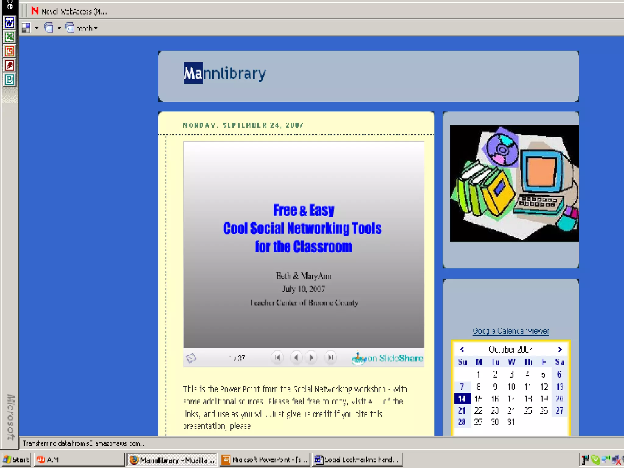 This document provides a summary of various free social networking tools that can be used in the classroom, including blogging, social bookmarking, wikis, podcasting, photo sharing, and RSS feeds. It describes the educational uses of each tool, examples of websites where they can be used, and precautions to take regarding privacy and safety. The document aims to demonstrate these tools and their applications in order to bring more collaboration and excitement to the classroom without being overwhelming.