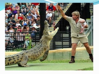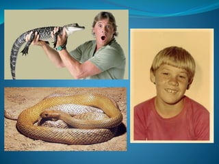 Steve Irwin was known as the Crocodile Hunter, growing up loving wildlife especially reptiles in Australia. He spent his life wrangling crocodiles and educating others about wildlife conservation. Though controversial for his risky animal encounters, Irwin inspired many through his enthusiasm. He tragically died at age 44 from a stingray barb piercing his heart while filming in 2006, but his legacy of wildlife protection lives on.