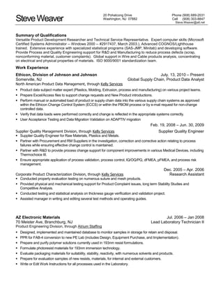 Steve Weaver has over 30 years of experience in product development research, quality engineering, and technical services. He has a background in statistical analysis and software development. His most recent role is as a Global Supply Chain Product Data Analyst at Ethicon, a division of Johnson & Johnson, where he manages product data and ensures accurate system updates.