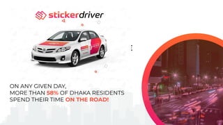 Sticker Driver is Bangladesh's first mobile app-based out-of-home (OOH) advertising platform leveraging vehicle wrap technology to connect brands with vehicles for advertising. With the potential to reach over 11 million daily commuters in Dhaka and provide real-time analytics, the platform offers flexible advertising solutions and multiple wrap options for brands. The service aims to maximize brand visibility and engagement by transforming vehicles into moving billboards, promising high recall rates and impactful impressions.