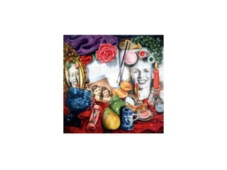 Still life is a painting or drawing of objects that do not move, like figures or landscapes. Artists have created still life works for hundreds of years, gaining popularity in the 17th century. Still life paintings often feature groups of natural objects like food, flowers, or household items arranged together by the artist to look interesting on a surface like a table or bench. Famous artists who have incorporated still life include Paul Cezanne, Henri Matisse, Giorgio Morandi, Vincent van Gogh, and Georgia O'Keeffe.