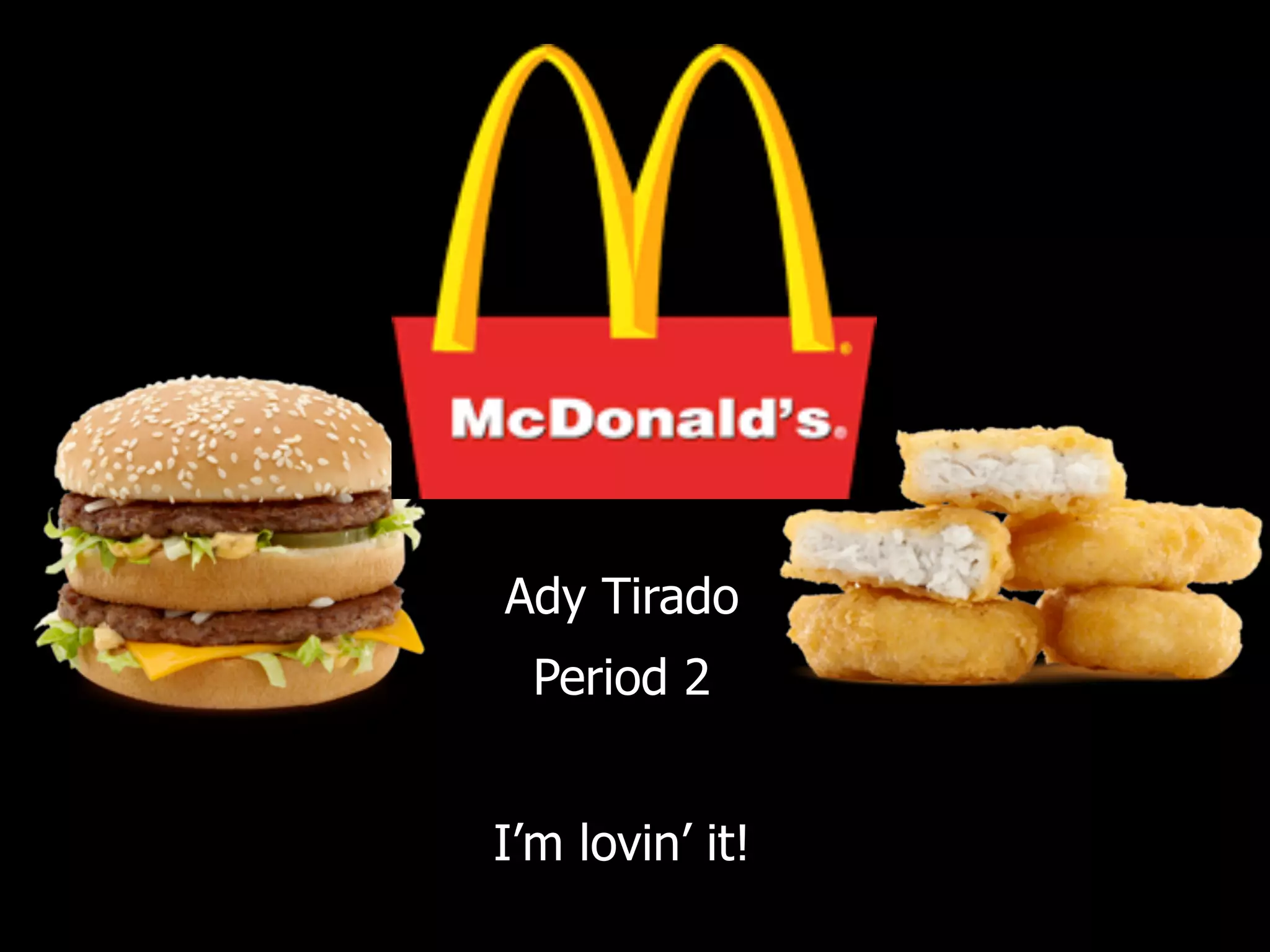 McDonald's Corp operates and franchises McDonald's restaurants globally. It offers hamburgers, cheeseburgers, chicken sandwiches, fries, salads, shakes and other food items. It has significant operations in the US, Europe, and Asia Pacific. Major competitors include Yum! Brands and Burger King.