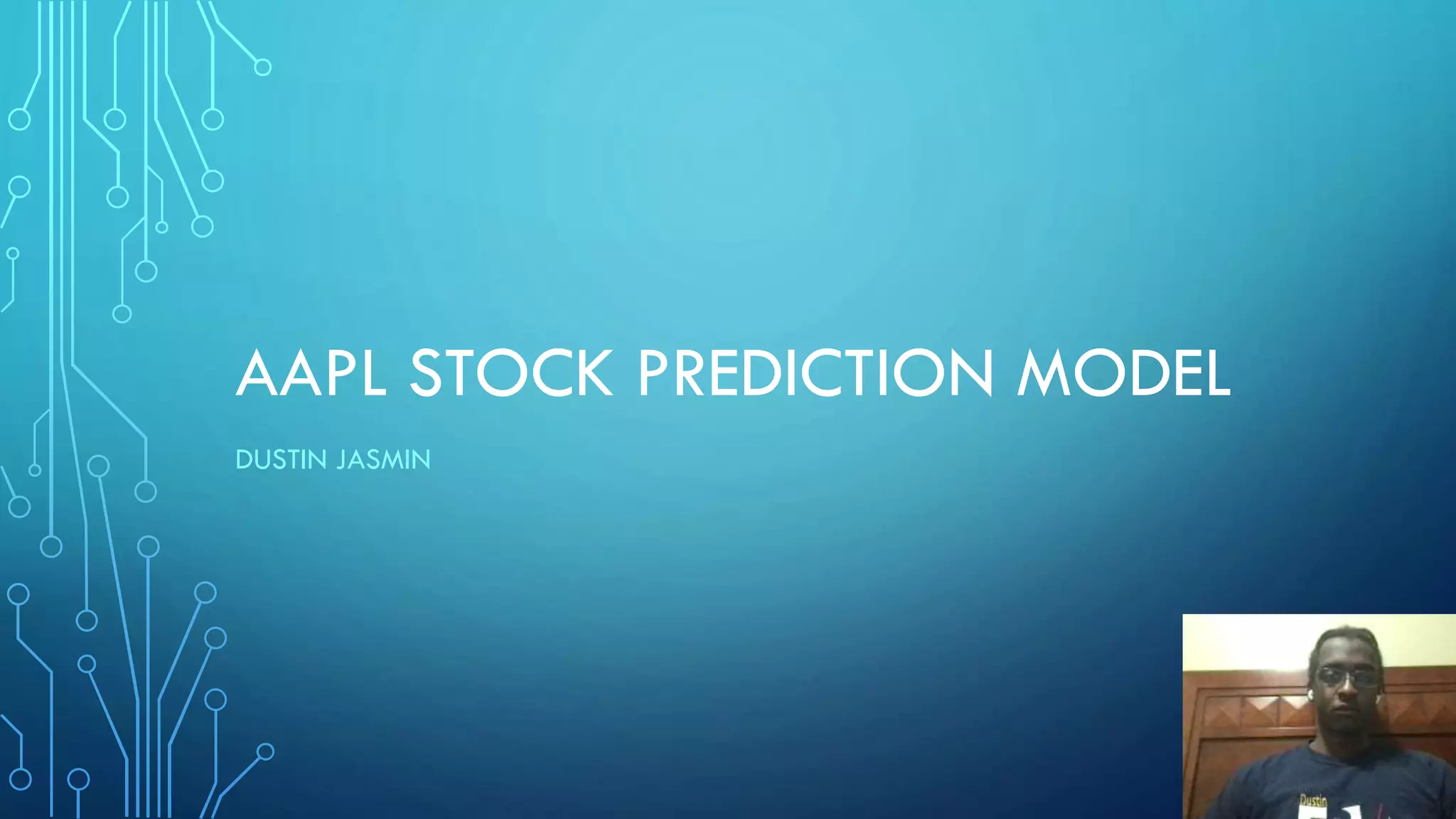 The document describes Dustin Jasmin's goal to develop a machine learning model to predict stock returns for Apple (AAPL) shares using the relative strength index (RSI) and moving average convergence divergence (MACD) indicators. It discusses importing stock data, pre-processing the data by adding it to dataframes and converting it to NumPy arrays, normalizing the data between 0 and 1, and developing a multi-layer perceptron model with an input, output, and hidden layer to make predictions. It concludes by noting the model learning loss sharply declined initially and steadily declined over time, while epoch duration decreased, indicating the model performed decently based on the loss data.