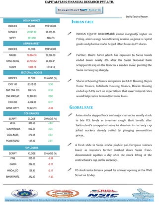 The daily equity report from CapitalStars Financial Research Pvt. Ltd summarizes the performance of the Indian stock market on the previous day. The key points are: