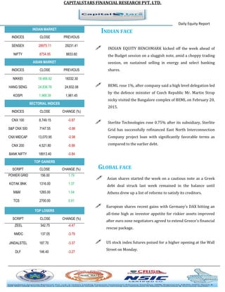 - The Indian equity benchmarks, Sensex and Nifty, opened the week on a sluggish note due to selling in energy and banking stocks ahead of the budget session.