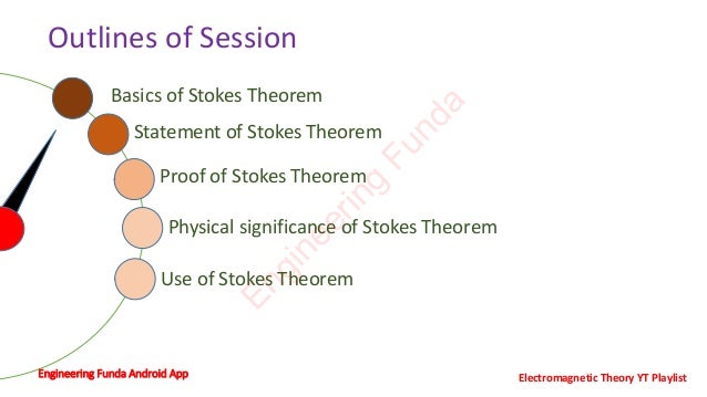 Stokes theorem explains the relationship between line integration and surface integration. It is based on the curl of a function, which describes the rotation of a body at different positions or torque. Stokes theorem mathematically equates the line integral of a vector field P around a closed curve C to the surface integral of the curl of P over any surface S bounded by C. It has various applications in fields like fluid mechanics, electromagnetics, and aerodynamics to understand the flow of fields.