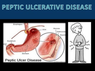 This document discusses interventions for stomach disorders including gastritis, peptic ulcer disease, Zollinger-Ellison syndrome, and gastric cancer. It begins with an introduction to the anatomy and physiology of the stomach. Gastritis is then defined and the types, risk factors, pathogenesis, clinical features, diagnostic evaluation, and management are outlined. Peptic ulcer disease is similarly defined and the classifications, risk factors, etiological factors, pathogenesis, signs and symptoms, complications, diagnosis, and medical and non-medical management are described.