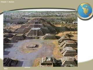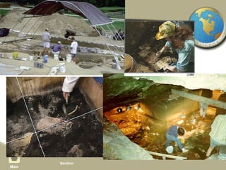 The document provides an overview of world history from prehistory to 3000 BC. It discusses how geography is linked to history and how anthropologists and archaeologists study early peoples. It describes advances made in the Old Stone Age and the religious beliefs of early humans. It explains how the Neolithic Agricultural Revolution led to permanent settlements and civilization near rivers. Key features that distinguish civilizations are also outlined, and how cultures spread and changed over time through interactions.