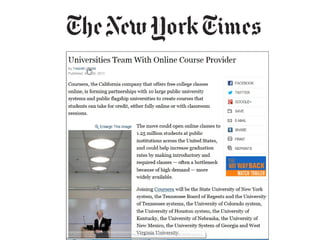 This document discusses open and online learning at Empire State College. It provides an overview of the college's foundation of openness since 1971, allowing flexible, self-paced study. It then summarizes Empire State College's current efforts in several open and online initiatives through its Center for Distance Learning, including open educational resources, MOOCs, blended learning, and collaborations within the SUNY system through Open SUNY. The document outlines goals to expand access to online programs and increase the number of online learners across SUNY through open approaches.