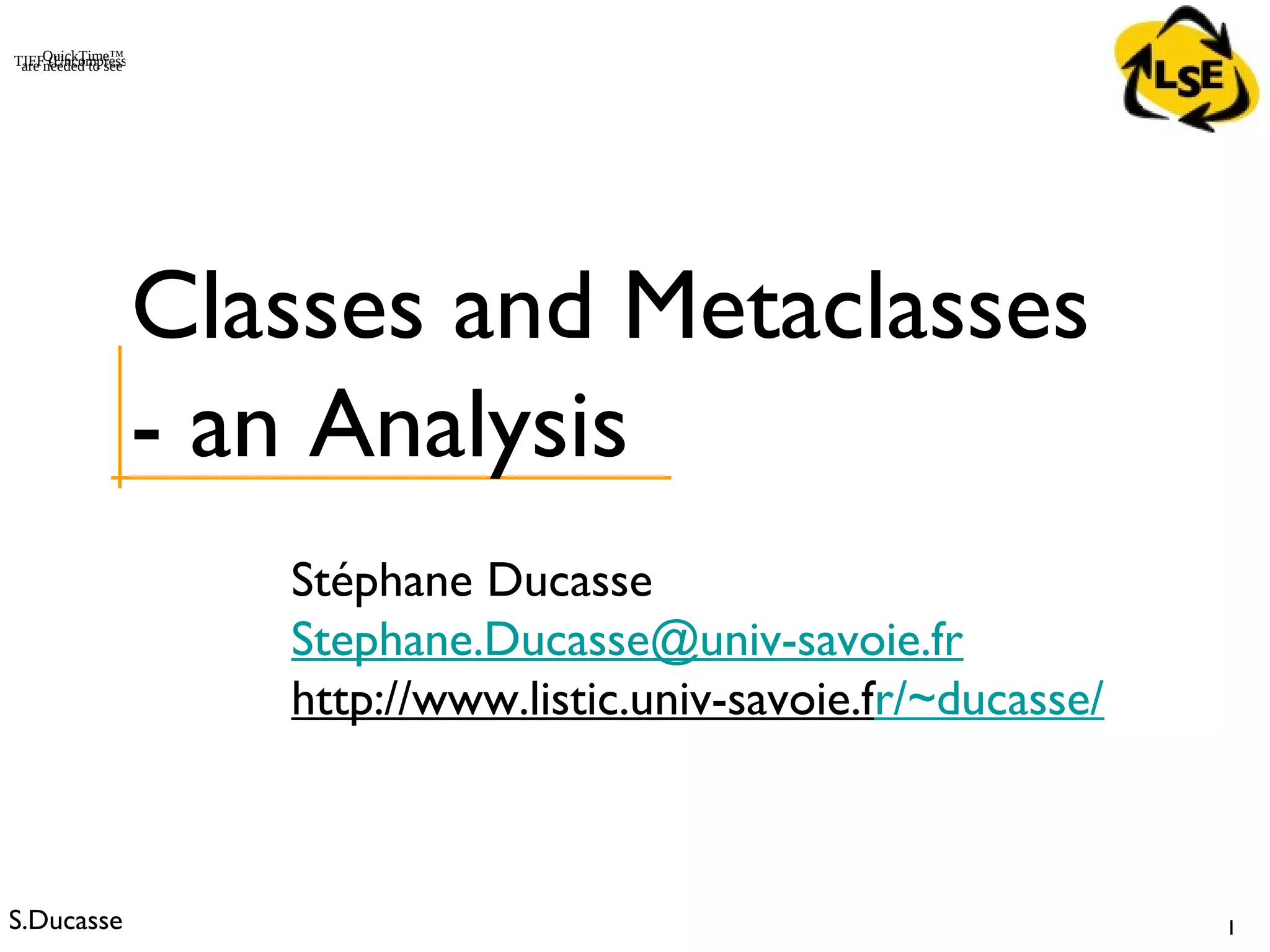 - Classes are objects that are instances of metaclasses. A metaclass is a class whose sole instance is another class.