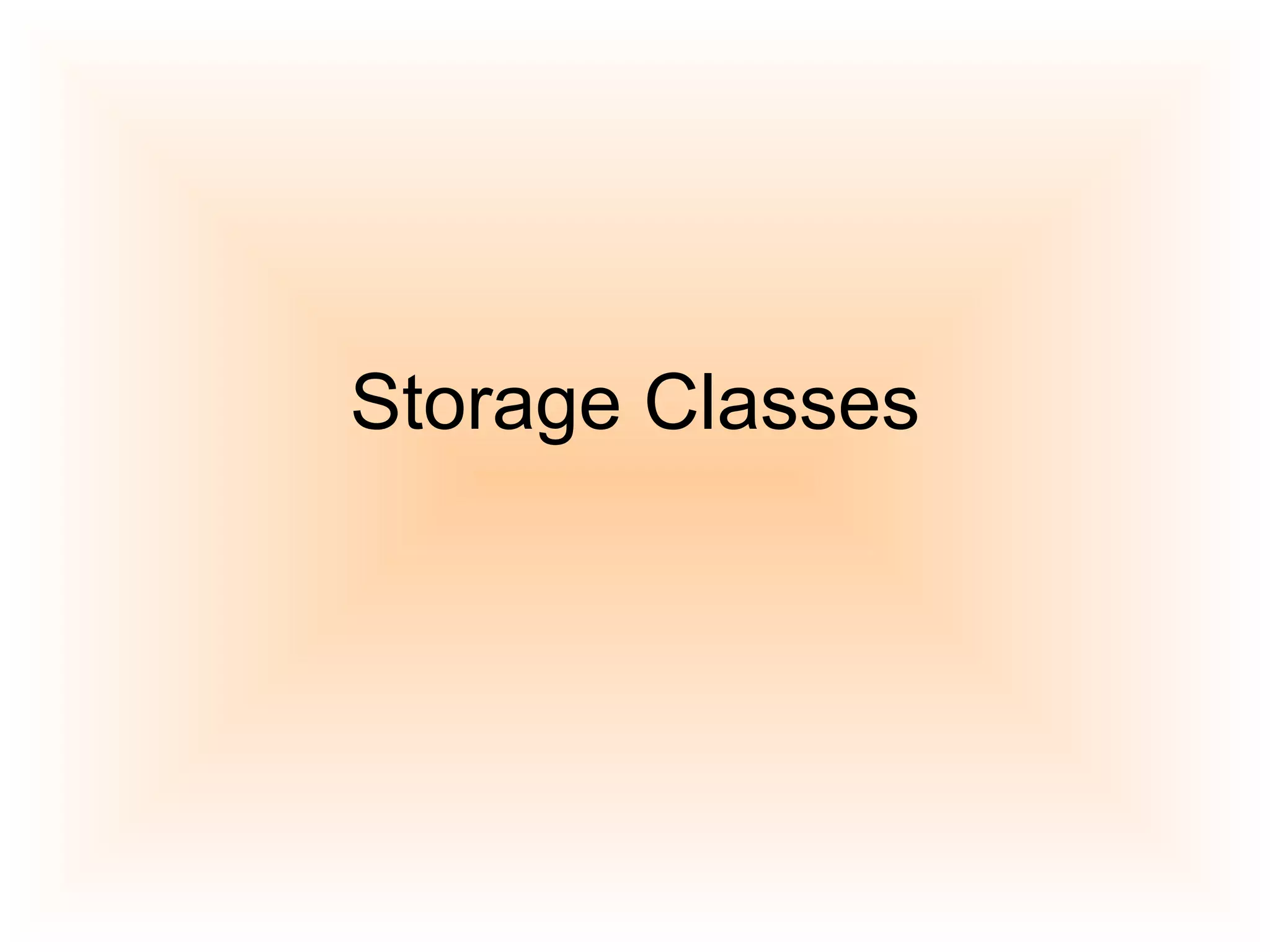The document discusses different types of storage classes in C programming: