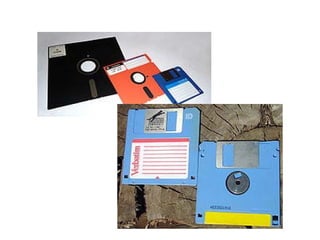 The document discusses various storage media technologies throughout history, including floppy disks, Zip drives, CDs, DVDs, and SD cards. It provides details on the development and usage of these formats. The document also discusses a proposed idea from 1999 to genetically engineer cockroaches to store a DNA archive of the New York Times, allowing communication with future generations due to cockroaches' ability to survive disasters for millions of years.