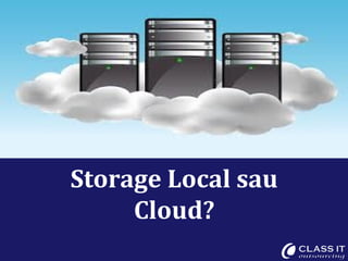 Documentul discută despre alegerea între soluțiile de stocare locală sau în cloud, subliniind dificultățile și oportunitățile asociate cu fiecare opțiune. Este esențial să se analizeze nevoile specifice ale afacerii, inclusiv puterea de calcul și cerințele de securitate, înainte de a selecta un furnizor. Echipa de profesioniști oferă asistență în integrarea soluțiilor Cloud, garantând implementarea și administrarea acestora.
