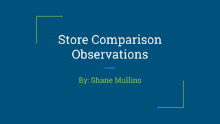 The document summarizes Shane Mullins' observations from visiting various stores. Some key points include: