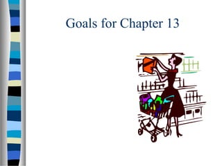 This document discusses store layout and design. It outlines the goals of discussing the primary objectives of store layout/design, steps in planning store layout, fixtures/merchandise presentation and their psychological impact, and how the store communicates sensory information to customers. Specific objectives covered include creating a positive store image and maximizing space productivity. Planning steps reviewed are allocating non-selling and selling space and common circulation patterns like free flow, grid, loop and spine layouts. Fixture types like gondolas, racks and wall fixtures are also outlined.