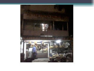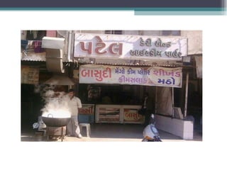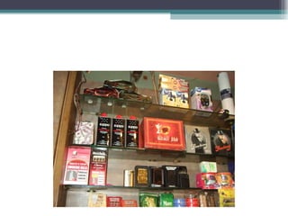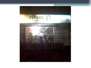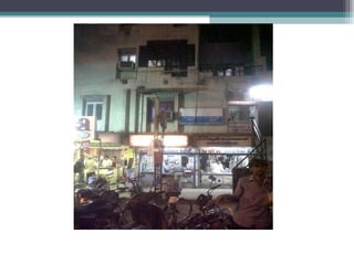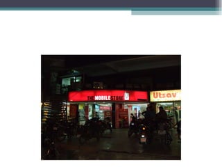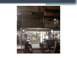 The document summarizes information about various retail stores located in different areas of Ahmedabad. It provides details about the store formats, product assortments, customer profiles, operational details, and competitive landscapes of stores ranging from specialty apparel and electronics boutiques to automobile dealerships, pan shops, grocery stores, and marble/tile merchants. Key areas discussed include CBD, Gota, and isolated store locations catering to different customer segments across income levels.