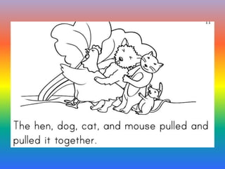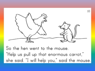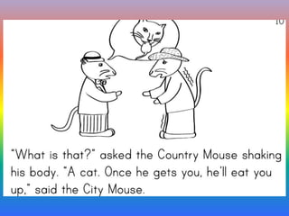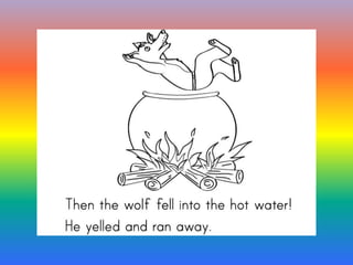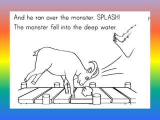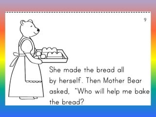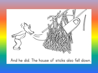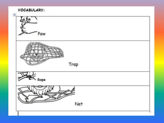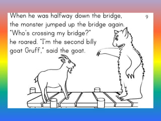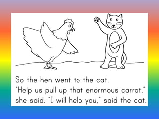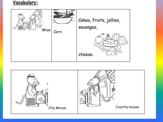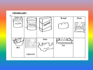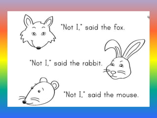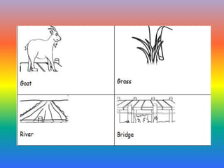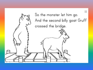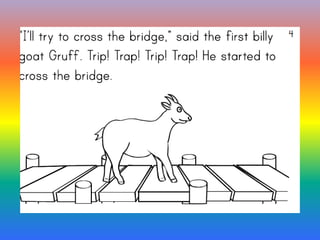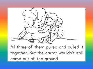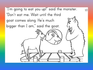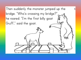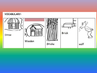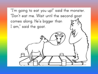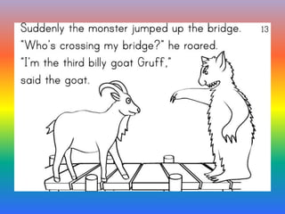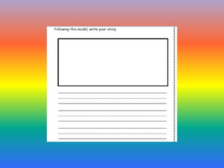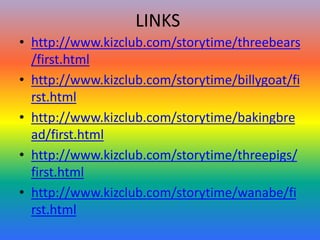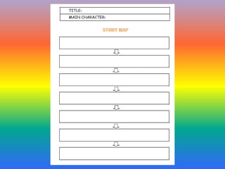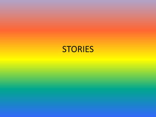 The document contains information about teaching stories to students, including links to online stories, definitions of literary elements, and activities and exercises for students to complete. It discusses having students read and illustrate stories, identify characters and settings, fill out story maps, rewrite stories changing characters, and present their new stories. It also includes lists of regular and irregular past tense verbs, the forms of "to be" in both present and past tense, and examples of when to use the past tense.