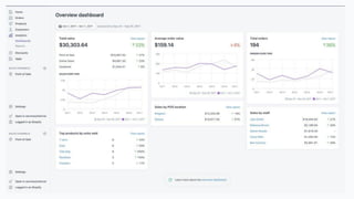 The document discusses the implementation of a complex analytics model at Shopify that processes large amounts of sales data using a streaming sales model with low latency and the ability to handle late-arriving updates. It details the architecture, challenges, and performance outcomes of maintaining extensive state in a Flink pipeline without garbage collection, achieving accurate backfill and recovery results. Key next steps include optimizing state management and introducing time-to-live (TTL) for certain states to improve efficiency.
