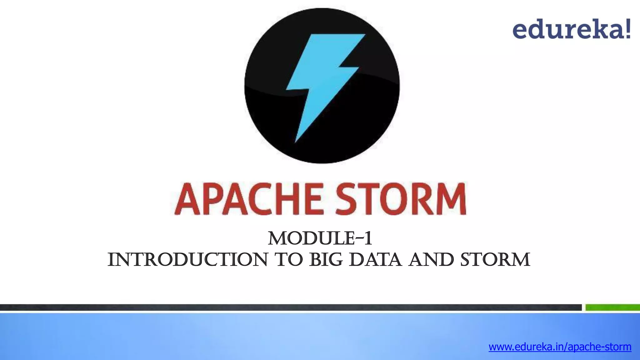 This document provides an introduction to Apache Storm and real-time big data analytics. It discusses how Storm can be used for processing real-time streaming data, as batch processing is not suitable. The three key points are: