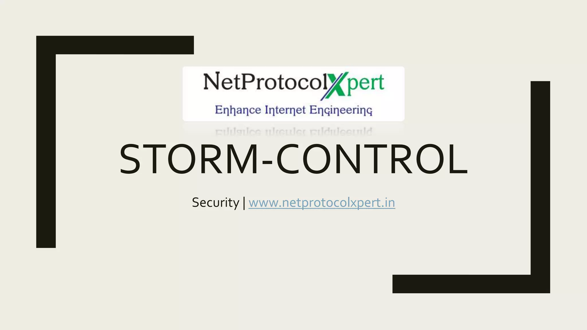 Storm control blocks interfaces from receiving excessive broadcast, multicast, or unicast traffic over a threshold within a time period. When traffic exceeds the rising threshold, the interface is blocked until traffic drops below the falling threshold. Storm control can shut down interfaces or send SNMP traps. It was tested between two switches, with one interface shutting down when unicast traffic exceeded 100 packets per second due to storm control being triggered.