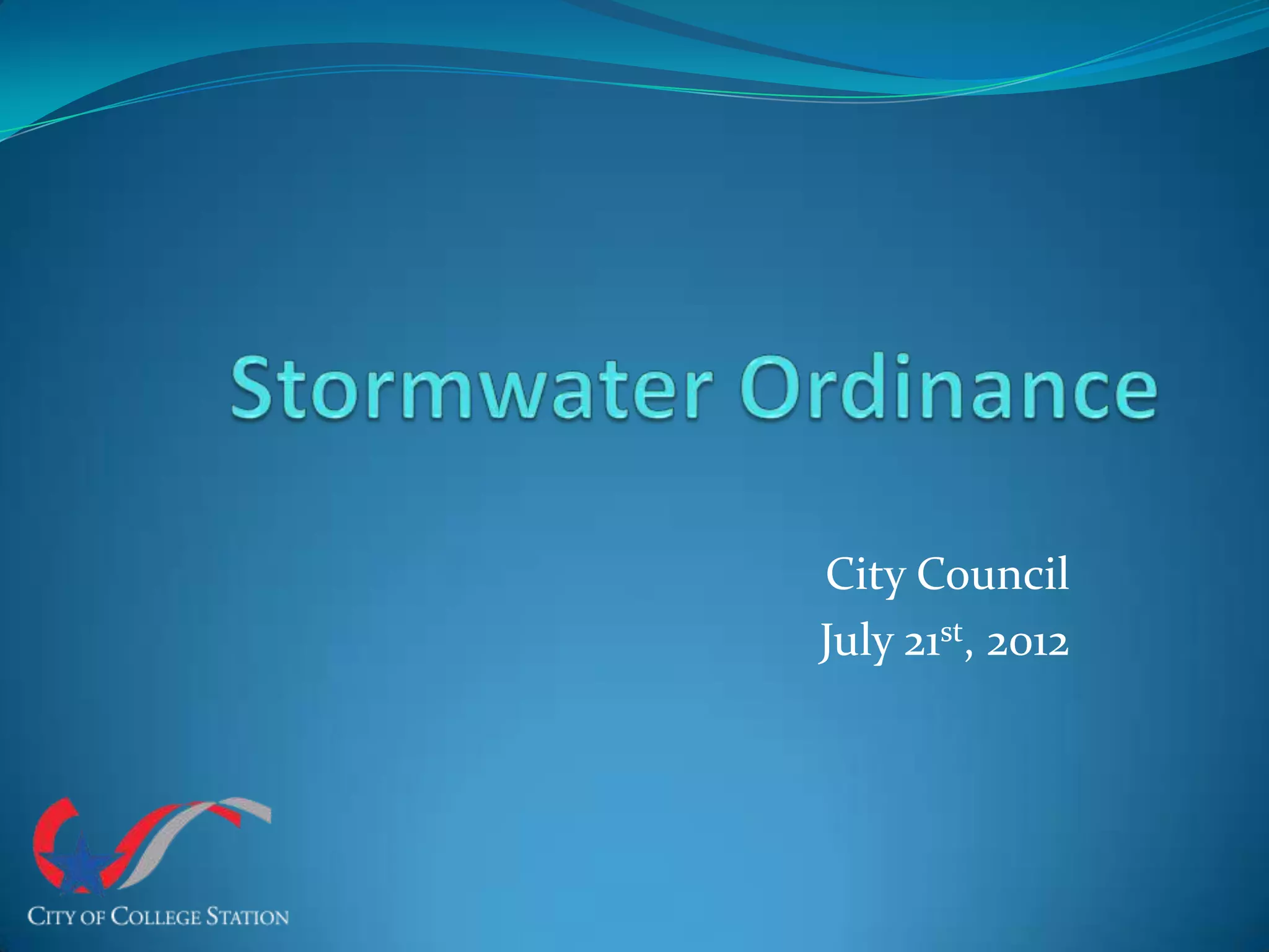 The document discusses the regulatory framework for stormwater management including the Clean Water Act and EPA NPDES program. It provides an overview of the City's stormwater management program requirements under their Phase II MS4 permit including public education, illicit discharge detection, and construction site controls. It also summarizes achievements to date and proposes a stormwater ordinance to regulate pollutant discharges and construction activities.