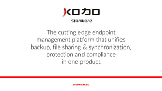 Storware KODO is a unified endpoint management platform that combines backup, file sharing, protection, and compliance, designed for diverse operating systems including Windows, OS X, and mobile platforms. It offers extensive data protection features, including protection against malware, file versioning, and encryption, while simplifying IT management and enhancing productivity for organizations. KODO aligns with top-tier companies like Samsung and IBM, providing detailed security measures and integrations to ensure comprehensive data and device safety.