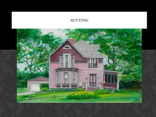 The document outlines a story map with characters, theme, conflict and plot. The theme is about a girl struggling internally. The conflict involves the girl hearing a creepy noise at night while sleeping. The plot follows the girl through her morning routine of waking up, eating breakfast with her family, and going to school.