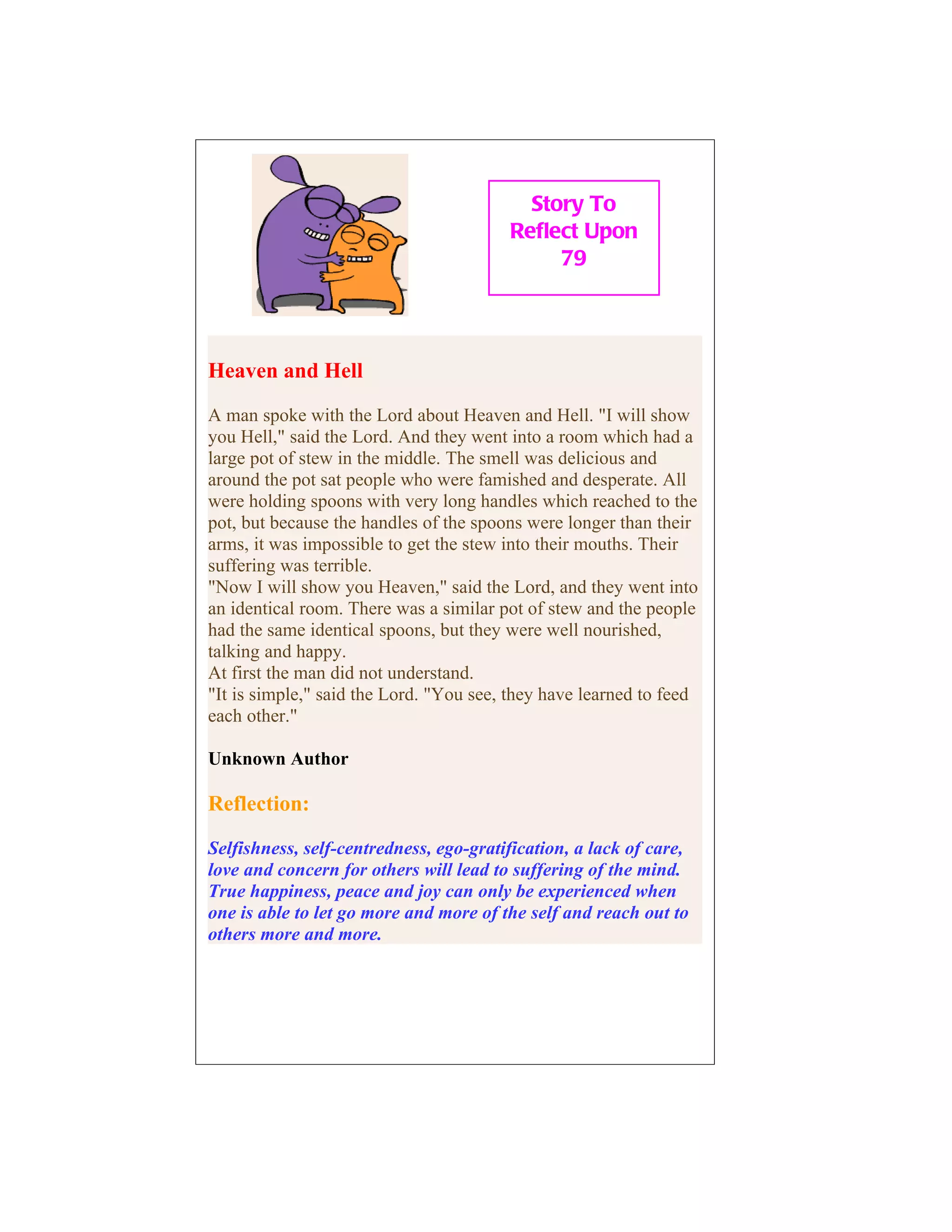 The story describes a man who witnessed a boy pushing his wheelchair-bound brother down the sidewalk. This prompted the man to reflect on how people in fast-paced modern lives often neglect to help those in need until forced to stop by disruptions. He was reminded not to rush through life so quickly that someone has to throw a brick to get his attention to the suffering of others. True spiritual growth comes from developing wisdom through meditation alongside serving others through charity.