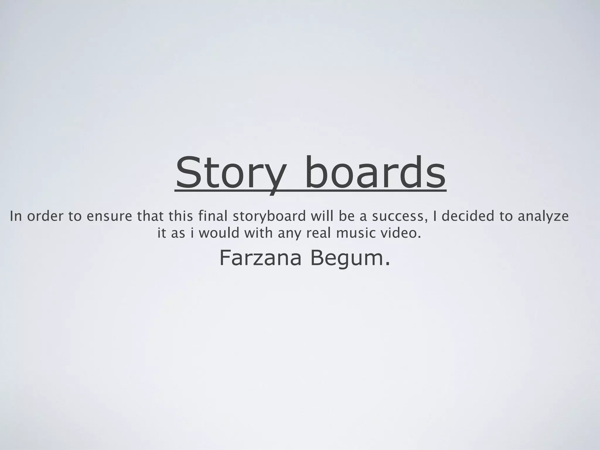 The document provides details on the storyboard for a music video. It describes scenes where the main artist walks through a door tiredly to show her troubled marriage. A note on her door introduces her as the singer. Flashbacks in black and white depict relationship problems, including the husband ignoring her and an argument. The final scene shows the husband finding her wedding ring after she has left, realizing what he has lost. The storyboard uses camera techniques and the artist's clothing, expressions and actions to convey the narrative and emotions of struggling in an abusive relationship and deciding to leave.