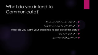 يتناول الوثيقة عناصر سرد القصة وكيفية إيصال الفكرة للجمهور بشكل فعال. تركز على أهمية جذب انتباه الجمهور من البداية، وتحديد نهاية القصة، بالإضافة إلى ضرورة تقديم خاتمة ترضي المشاعر المختلفة. تشمل النصائح أيضًا استخدام عناصر غير اعتيادية ومؤثرة لخلق تجربة قصصية فريدة.