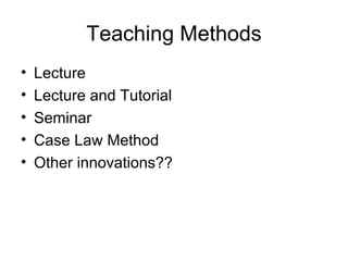 The document discusses storytelling as an innovative teaching method that shifts focus from teacher-led instruction to student-centered learning, particularly in the context of law education. It emphasizes the use of final appellate court decisions to illustrate legal stories, encouraging students to analyze cases from multiple perspectives and engage more deeply with the content. The methodology can be integrated across various subjects, fostering practical experiences and oral argumentation skills.