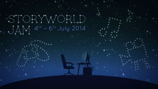 This document outlines the schedule and activities for a Storyworld Jam (#SWJ14) taking place from Friday to Sunday. The jam allows participants to collaboratively create works set within a fictional storyworld. On Friday there is an opening and presentations, with team forming in the evening. Saturday has pitching sessions and networking events. Sunday includes openings, showcases, and a closing party. The document also defines what a storyworld and storyworld jam are, and lists key elements to consider when building a storyworld, such as theme, concept, genre, setting, existents, and rules.