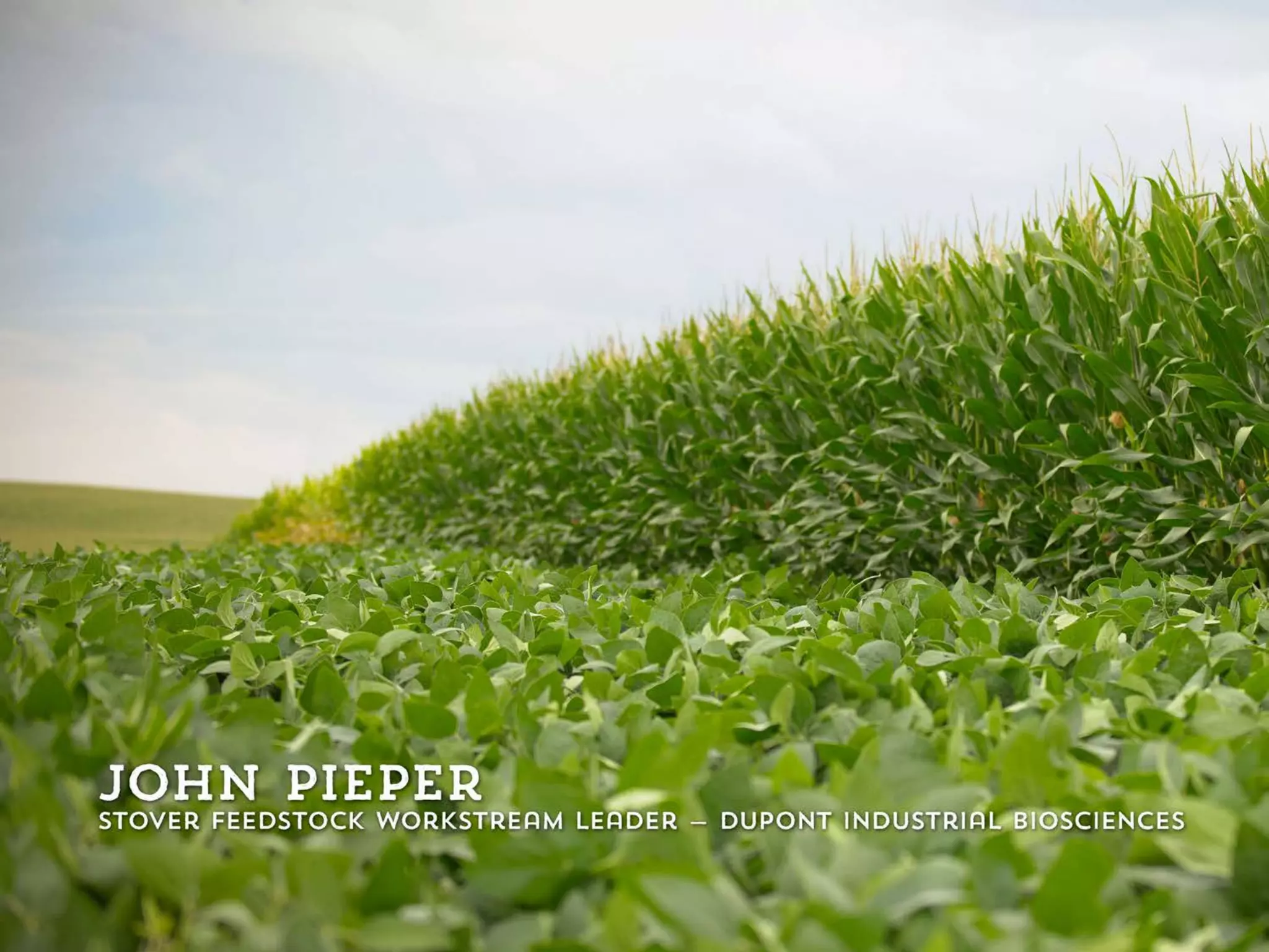 This document summarizes DuPont's 2014 corn stover harvest from 60,000 acres in central Iowa. The harvest occurred from September 26th to December 7th, spanning 72 days, due to a late corn planting season with rain, drizzle and snow. Corn stover provides both conservation benefits like reducing soil erosion and maintaining soil organic matter, but also has agronomic limitations like interfering with early crop growth. Field trials showed improved soil conditions at planting and faster stand establishment with stover harvest. On average, stover harvest increased corn yields by 5.2 bushels per acre. A financial analysis estimated farmers could gain $32 per acre in net profit from stover income, fertilizer replacement value, and yield increases.