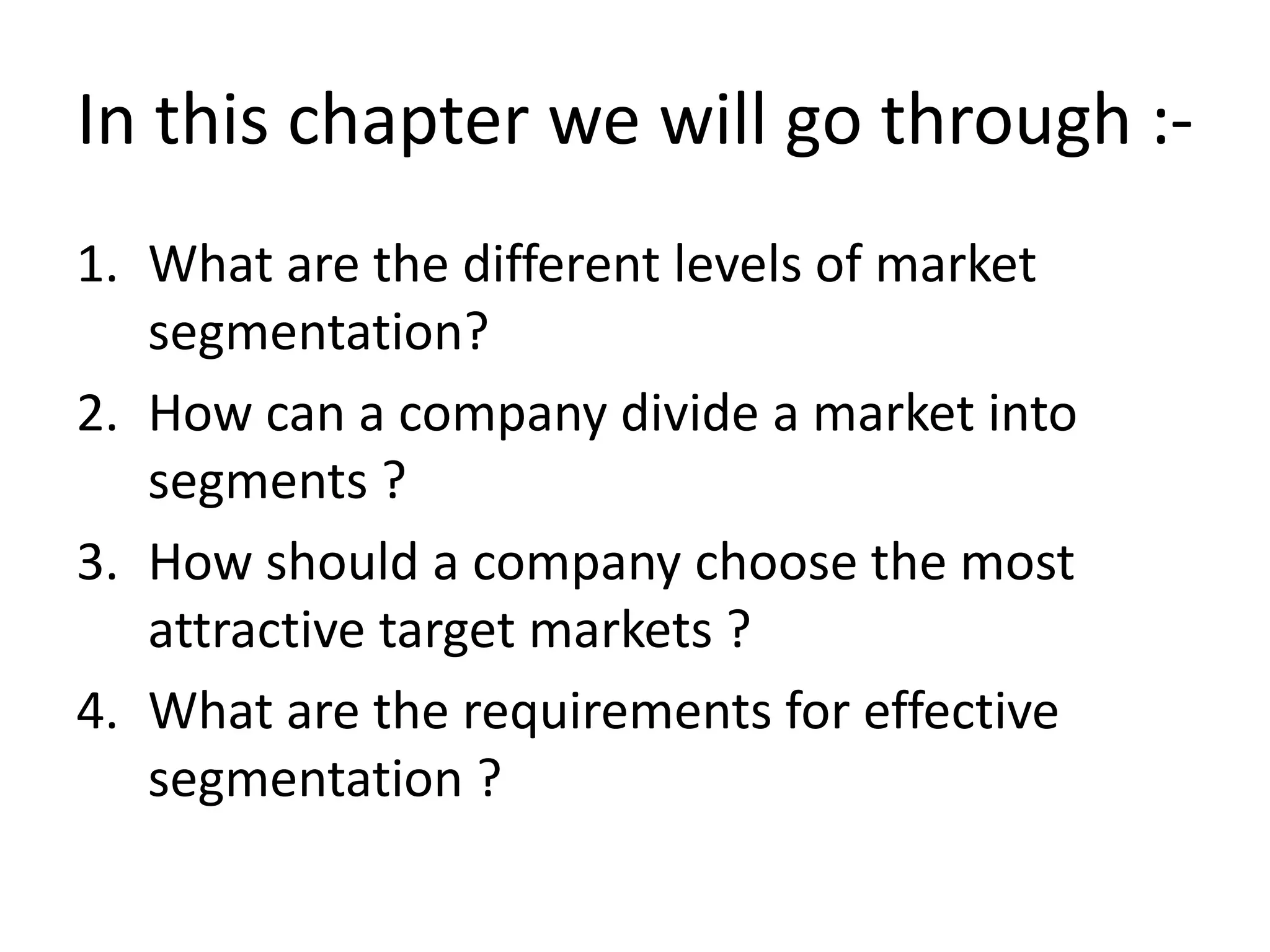 This document discusses segmentation, targeting, and positioning in marketing. It defines segmentation as dividing the market into groups with distinct needs, and discusses different bases for segmentation including geographic, demographic, psychographic, and behavioral factors. It also outlines levels of segmentation from mass to niche marketing. Targeting involves selecting attractive market segments to focus on, while positioning is about creating the right perception of a product in the minds of consumers relative to competitors. Effective segmentation requires segments to be measurable, accessible, substantial, and differentially responsive to marketing strategies.