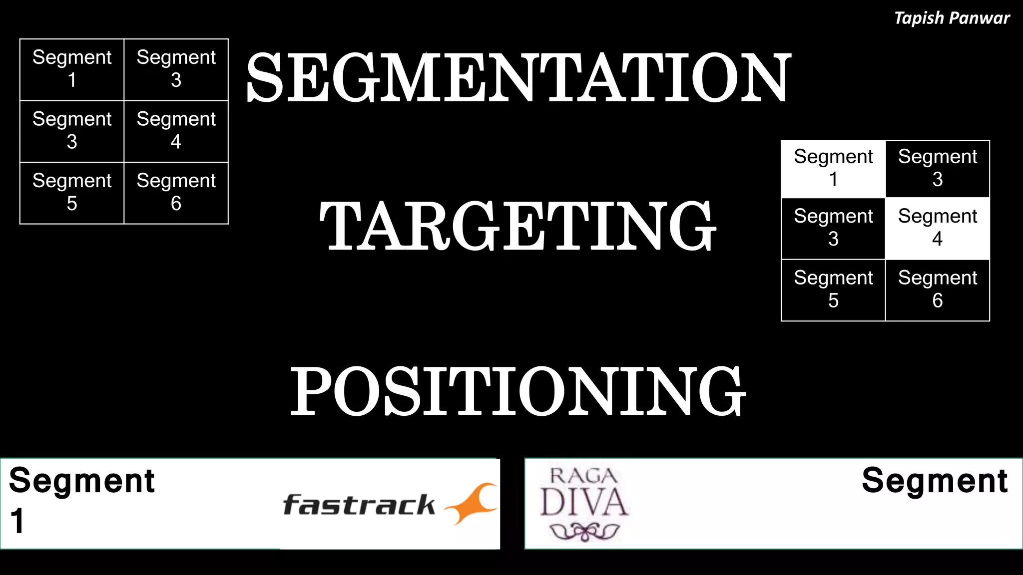This document discusses segmentation, targeting, and positioning as marketing strategies. It defines segmentation as dividing a market into homogeneous groups. Targeting involves selecting the most profitable market segments. Positioning designs a company's offering and communications to occupy a distinctive position in customers' minds. The document provides examples of how to segment based on demographics, psychographics, and behaviors. It also discusses factors to consider when targeting segments, such as growth potential, size, and costs. Positioning strategies like points of difference, points of parity, and perceptual mapping are also outlined.