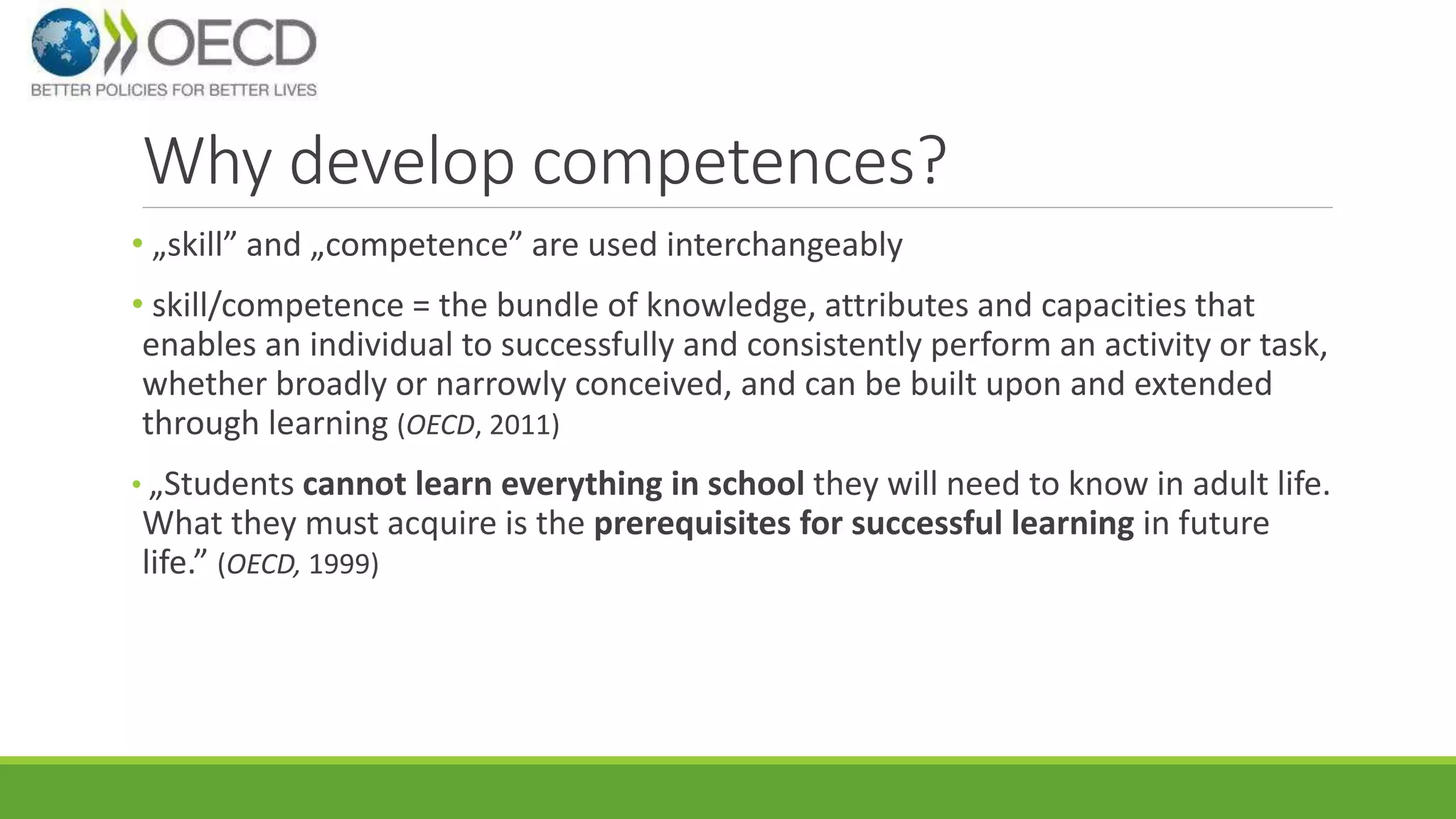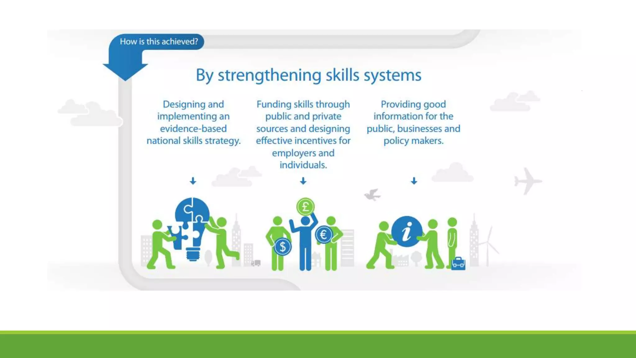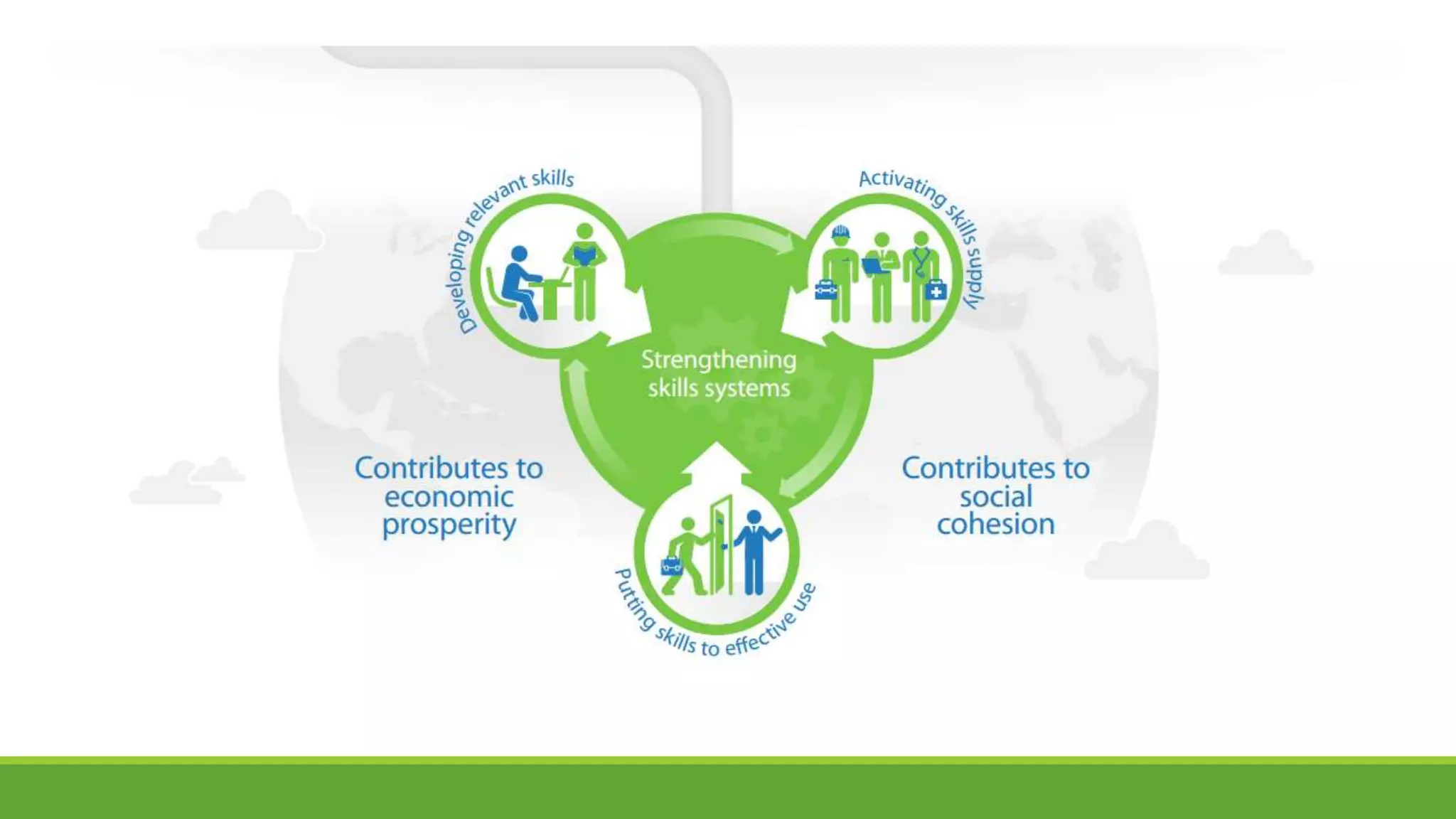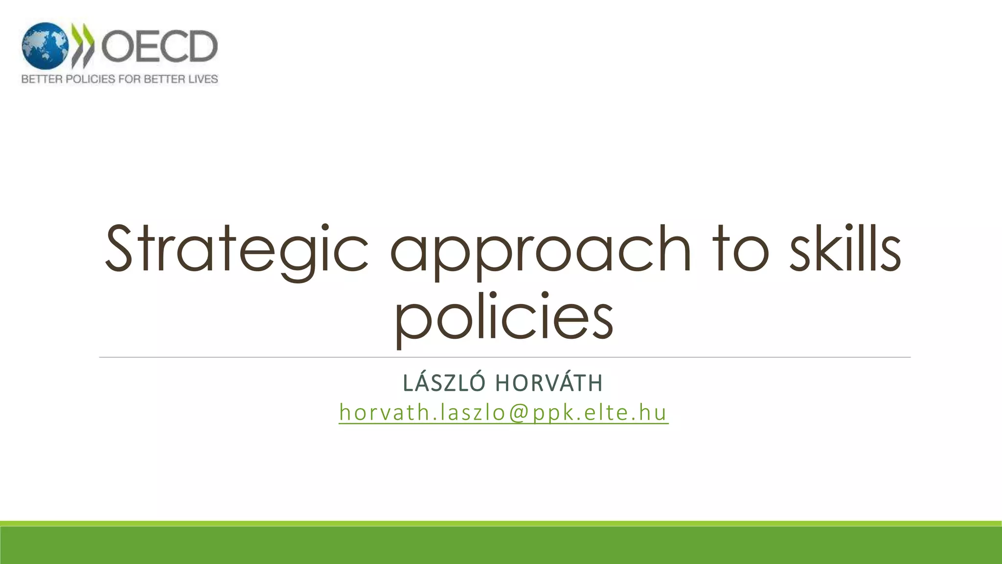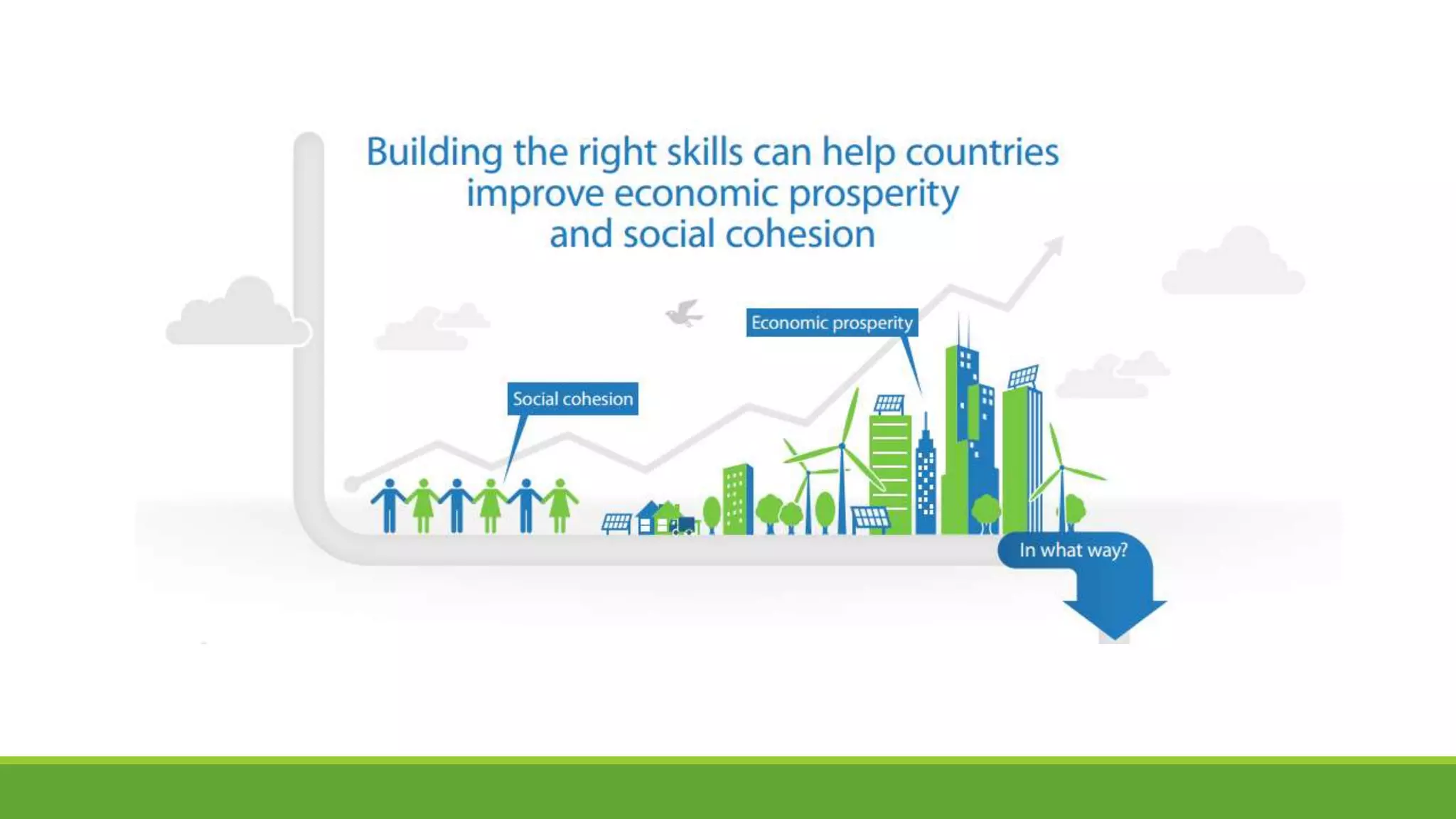The document discusses the importance of developing competences and skills to address global competition, high unemployment, and an aging population. It outlines a strategic approach for governments to enhance skills policies through efficient education and training expenditure, fostering lifelong learning, and promoting equity in education. The document highlights the dynamic relationship between skills supply and demand, providing insights on how countries can maximize the use of skills to boost employment and economic growth.
