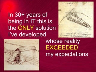 The document discusses how strategic virtualization, beginning with desktop/webbook virtualization, can transform an organization and allow IT to become a competitive advantage. It describes how Amerisure Insurance implemented a strategic virtualization roadmap that simplified their infrastructure and dramatically improved productivity, security, and cost savings. Key benefits included ubiquitous access, reduced total cost of ownership, improved quality of life for employees, a more agile architecture, and positioning the company for the future.